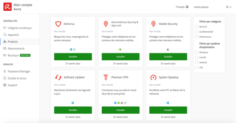 En tant que marque de cybersécurité de premier plan en Allemagne, Avira n’a cessé d’innover et de s’adapter à un monde numérique en constante évolution. Son portefeuille de produits intégrés résiste aux cybermenaces tout en étant léger pour votre machine et facile à utiliser. En effet, de nombreux outils fonctionnent en quelques clics seulement. Avira est convaincu que la sécurité et la confidentialité ne sont pas un privilège mais doivent être accessibles à tous. C’est pourquoi nous vous invitons à vous protéger, gratui