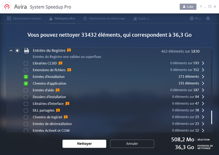 Trop de fichiers indésirables sur votre PC ? Des énormes fichiers qui occupent tout l'espace ? Des entrées de registre erronées qui vous ralentissent ? Impossible de désinstaller des logiciels encombrants ? Avira System Speedup Pro identifie tous les obstacles qui vous ralentissent. Nettoyez les fichiers indésirables en un clic ou configurez un nettoyage hebdomadaire automatique.