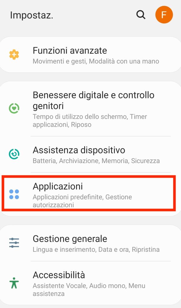 - A tal scopo, apri l’app Impostazioni nel dispositivo.