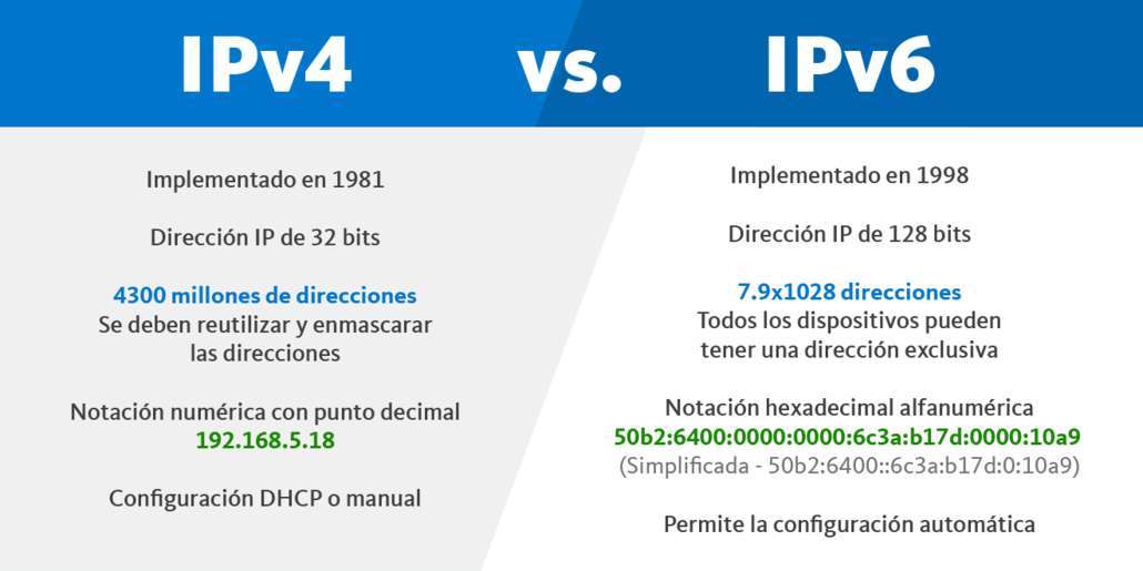 Di norma, attualmente vengono utilizzati ancora gli indirizzi del protocollo Internet versione 4 (IPv4). Sono costituiti da quattro blocchi di caratteri numerici, o 32 bit, e possono contenere valori da 0 a 255. Ma poiché la necessità di indirizzi IP univoci è in continuo aumento, in una prospettiva di lungo periodo IPv4 sarà sostituito da IPv6. Il motivo è che gli indirizzi IPv6 sono composti da otto blocchi di caratteri numerici o alfanumerici, o 128 bit, determinando la disponibilità di un numero significativamente maggiore di indirizzi IP possibili. Tuttavia, poiché il passaggio completo sarà un processo lungo, attualmente si utilizzano processi di transizione (tunneling, funzionamento parallelo o conversione del protocollo) per consentire la coesistenza dei due protocolli.