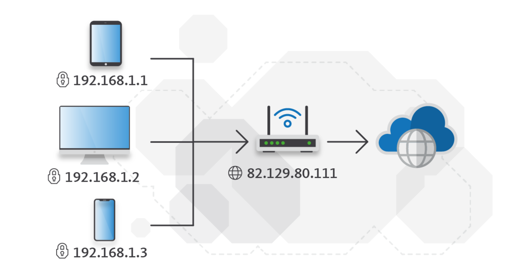 Il tuo router, a sua volta, assegna automaticamente ai dispositivi abilitati a Internet nella tua rete un indirizzo IP interno tramite il protocollo DHCP (dynamic host configuration protocol), noto anche come indirizzo IP privato o locale e non visibile all'esterno. Gli indirizzi IP interni sono permanenti e, a differenza di quelli esterni, non sono unici in tutto il mondo ma solo all'interno di una rete locale. Ad esempio, se il computer e lo smartphone sono connessi alla stessa rete Wi-Fi, gli indirizzi IP interni potrebbero essere 192.168.1.2 e 192.168.1.3, mentre il router ha l'indirizzo IP standard 192.168.1.1. Questi indirizzi IP interni vengono utilizzati solo per comunicare all'interno della rete. Possono anche essere modificati, ma in genere non è necessario.