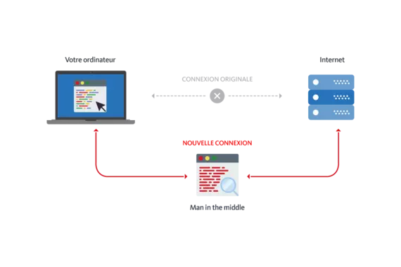 Gli attacchi "man in the middle" (MITM) sono quelli in cui un terzo malintenzionato intercetta le comunicazioni di altri utenti. A questo punto può presentare siti web falsi, intercettare le password e accedere ai file che contengono i dati personali. Dato che sulle reti Wi-Fi pubbliche i dati non sono crittografati, gli utenti qui sono particolarmente vulnerabili agli attacchi MITM.