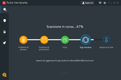 Scarica Avira Free Security dal nostro sito Web. Apri il file .exe e segui le istruzioni di installazione. In pochi minuti potrai avviare la tua prima Scansione Smart per individuare problemi di sicurezza, privacy e prestazioni. Ti consigliamo di creare un account Avira personalizzato per beneficiare di dati VPN aggiuntivi, funzioni extra per Password Manager e altro ancora.