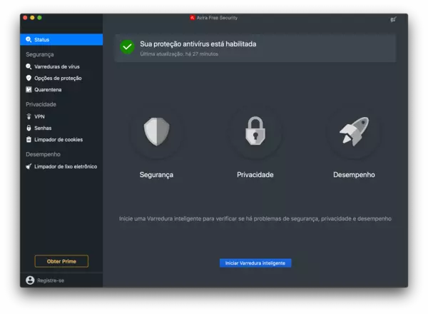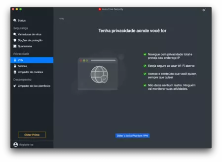 "O Avira Free Antivirus protege contra malware sem sobrecarregar o seu Mac."