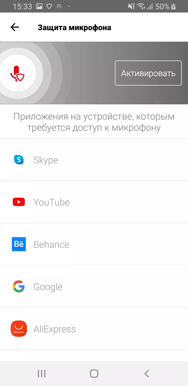 - Функция защиты микрофона позволяет легко выбирать, каким приложениям будет предоставляться доступ к микрофону.